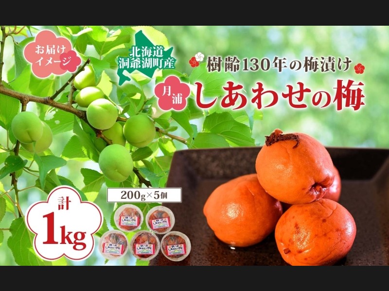 北海道・樹齢130年の梅漬け「しあわせの梅」1kg(200g×5個) 梅干し 漬物 うめ