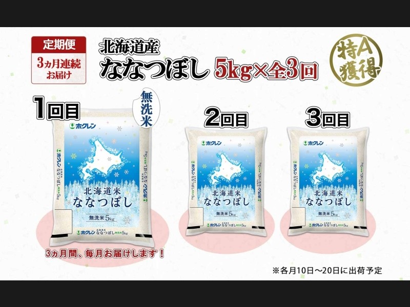 北海道産の特A米『ななつぼし』無洗米 5kg×全3回をお届け!