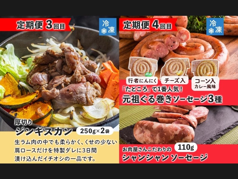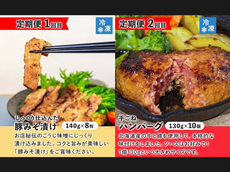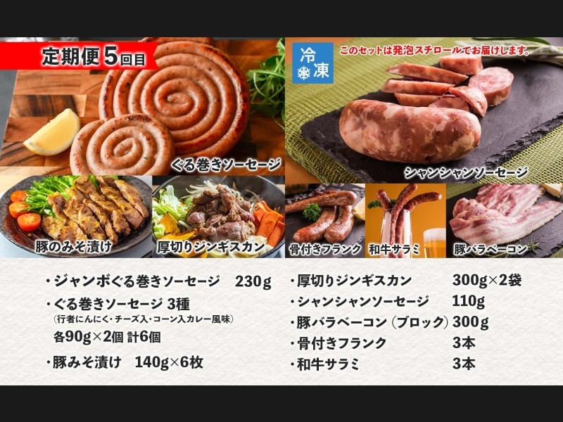 定期便 5ヵ月 北海道 豚みそ漬け ハンバーグ ジンギスカン ぐる巻き ソーセージ シャンシャン ハム ベー...