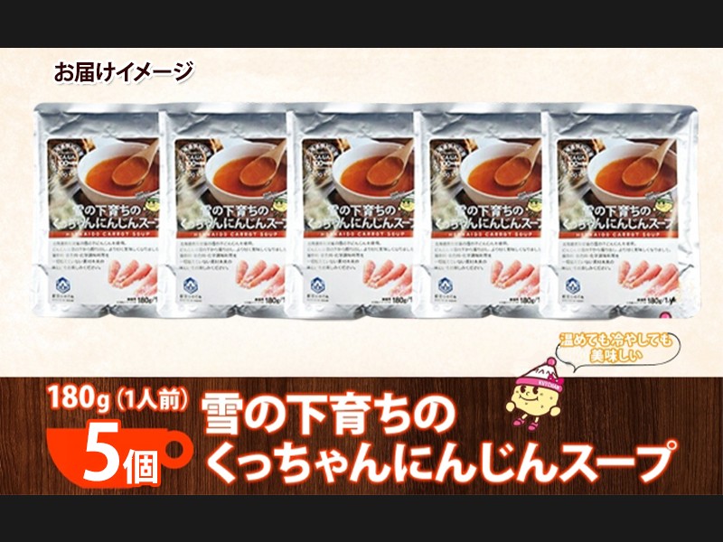 北海道産 雪の下育ちのくっちゃんにんじんスープ 180g×5個 小分け 個包装 レトルト スープ 人参 ニンジ...