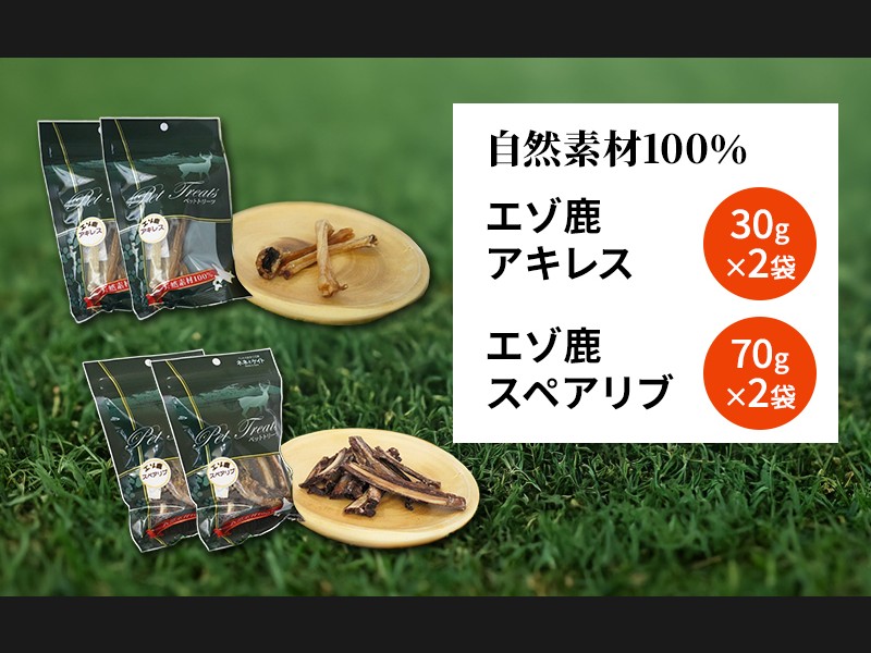 犬 おやつ セット【 アキレス 30g×2袋 スペアリブ 70g×2袋】歯磨き 肉付き ストレス解消 森のジビエ 鹿...