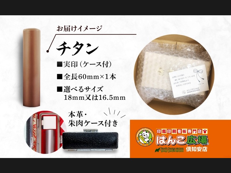北海道 チタン 印鑑 実印 60mm×1本 ケース付 選べる 書体 18mm 16.5mm チタン製 はんこ ハンコ ケース ...