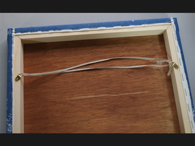 後ろには金具と紐がついていて壁にそのままかけられるようになっています。