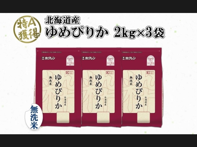 北海道産 ゆめぴりか 無洗米 6kg 米 特A 獲得 白米 お取り寄せ ごはん 道産 ブランド米 6キロ 2kg ×3袋 ...