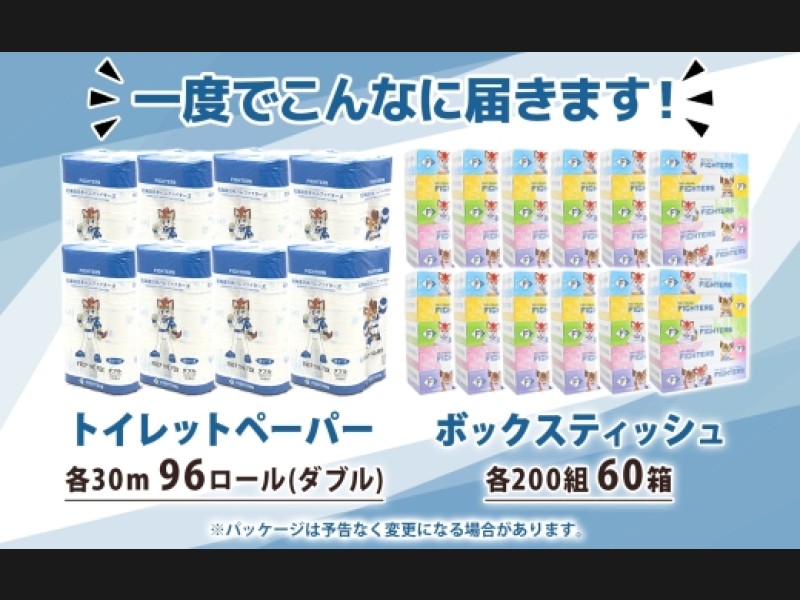 北海道 日本ハムファイターズセット トイレットペーパー ダブル 30m 96ロール ティッシュペーパー 200組...
