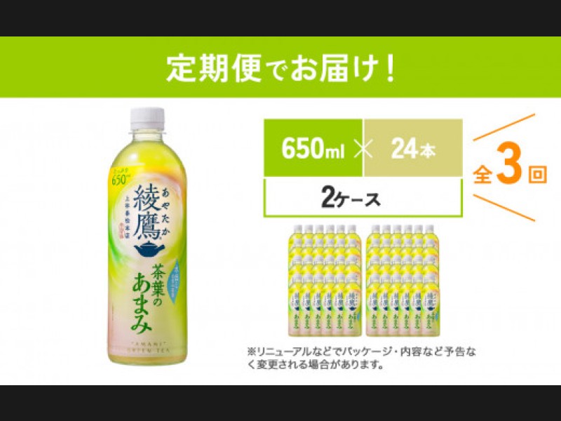 ・綾鷹茶葉のあまみ:(650ml×24本)×2ケース×3回