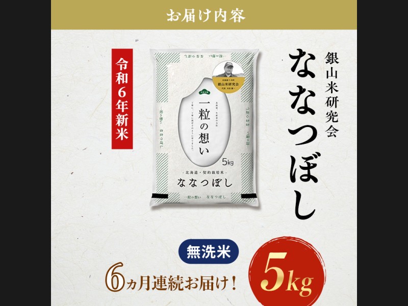 6ヵ月 定期便 銀山米研究会の無洗米<ななつぼし>5kg×1袋 ライス 白米 精米 ブランド米 おにぎり お弁...
