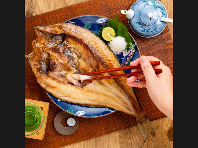 冷たく広大なロシア海域で漁獲された脂の乗ったしまほっけを紋別自社工場で熟練職人が一枚づつ手作業で仕立てました。