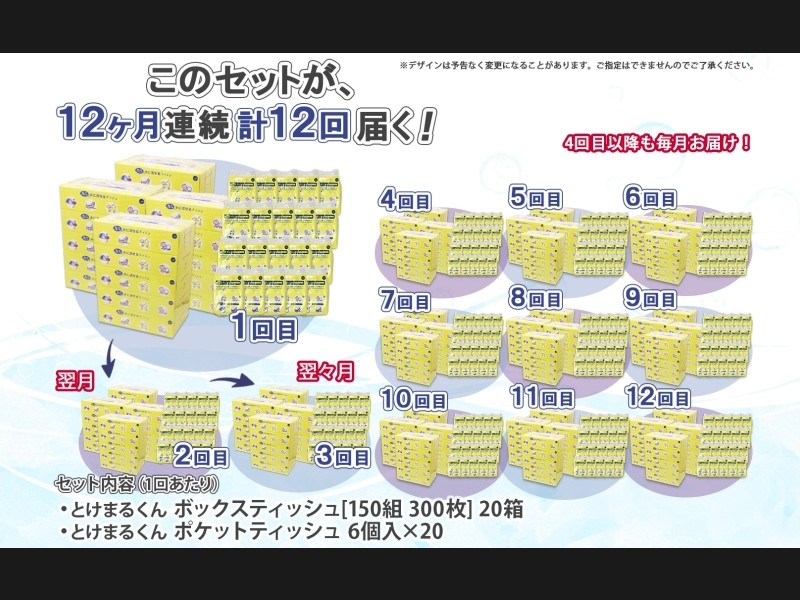 北海道 定期便 12ヶ月連続 とけまるくん ボックス ティッシュ 20箱 ポケット 120個 水に流せる ペーパー...