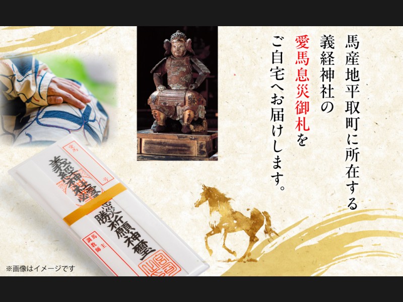 馬産地平取町に所在する義経神社の愛馬息災御札をご自宅へお届けします。
