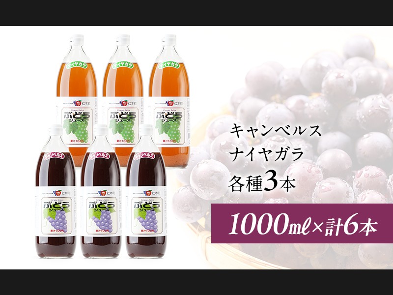 北海道仁木産ぶどうジュース飲み比べセット(キャンベルス、ナイヤガラ):1000ml×6本 果汁飲料 野菜飲...