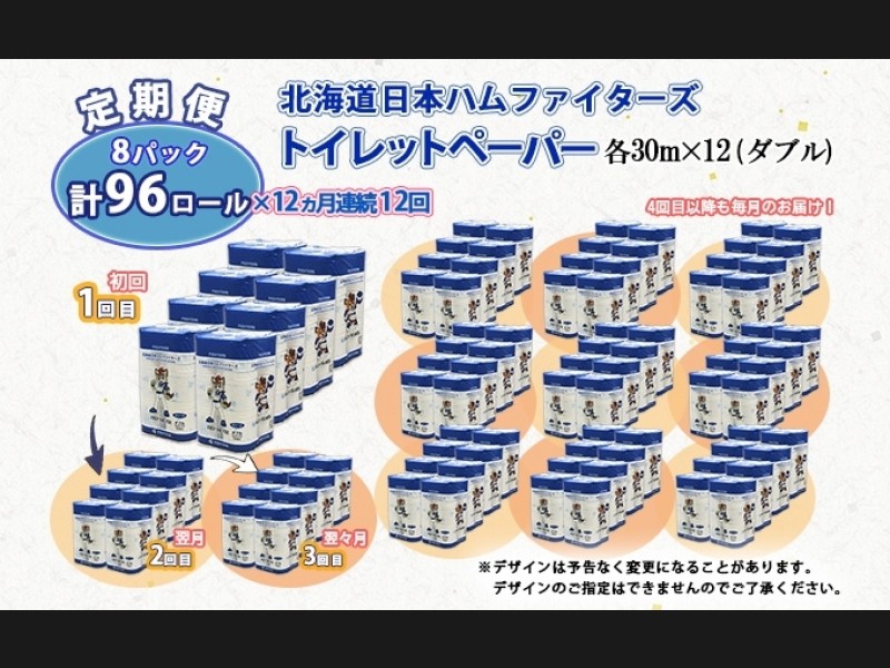 定期便 12ヵ月 連続12回 北海道 日本ハムファイターズ トイレットペーパー 30m 96ロール 香り付き 日本...