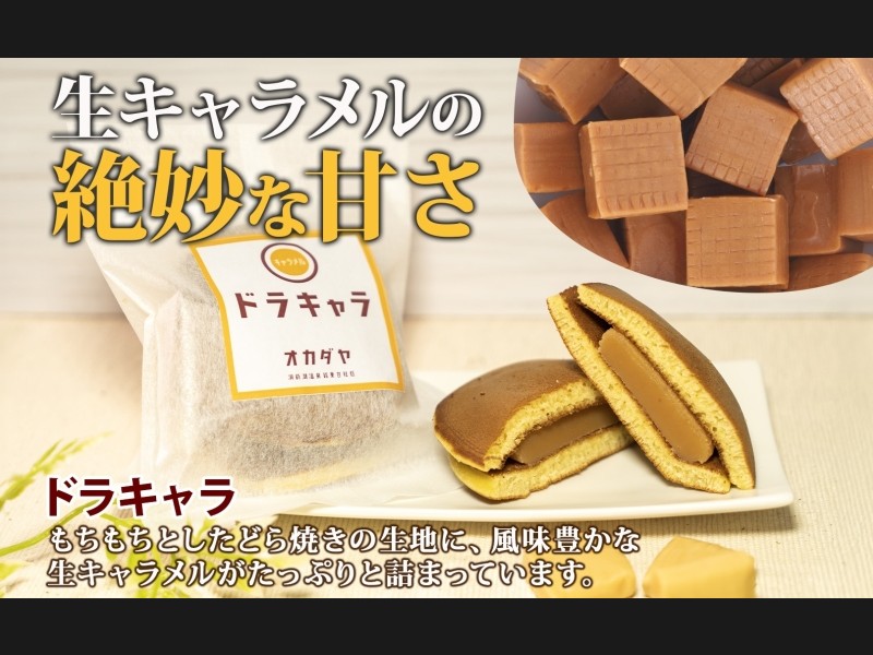 生キャラメル餡をどら焼きの生地で挟んだ、和洋折衷の和菓子です。