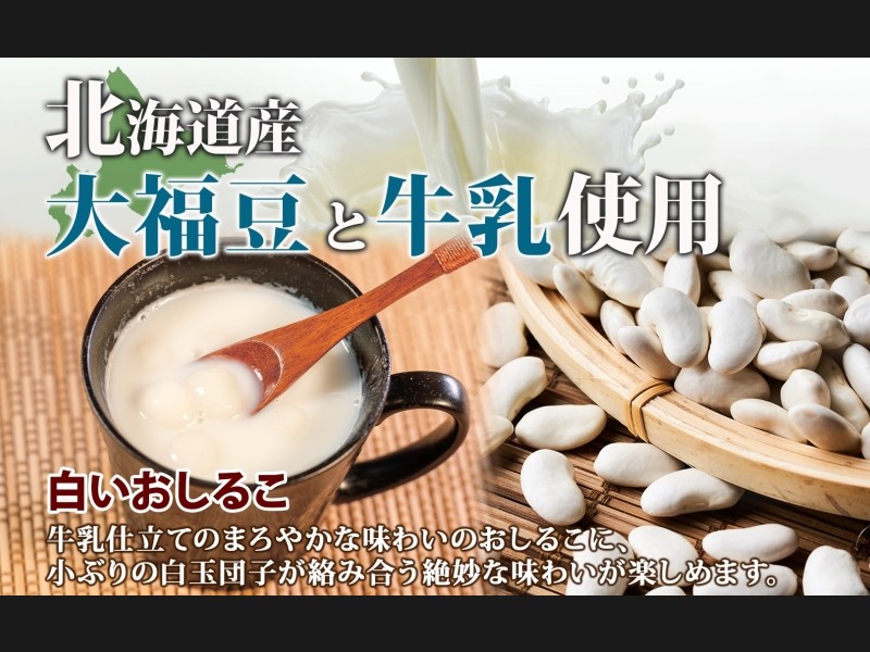 北海道をイメージした真っ白なお汁粉は、ミルキーでまろやか。