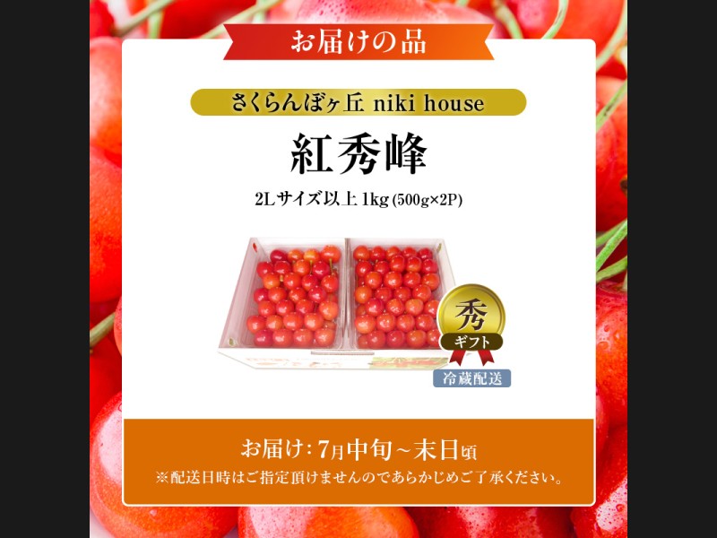 [先行受付] さくらんぼ 紅秀峰 2Lサイズ 以上1kg(500g×2パック)化粧箱入 サクランボ チェリー フルー...