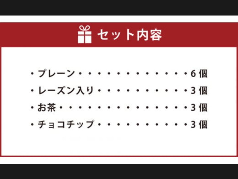 小麦粉(国内製造)、バター、島ザラメ、アーモンドプードル、卵(えびの市産)、生クリーム、レーズン、無脂肪牛乳、植物油脂、クリームチーズ、脱脂粉乳/膨張剤、安定剤(増粘多糖類)(一部に大豆を含む)