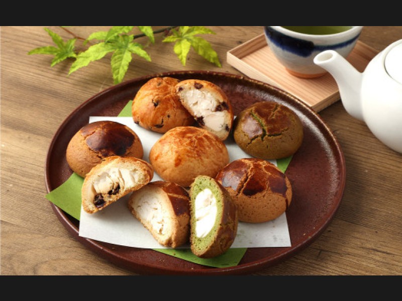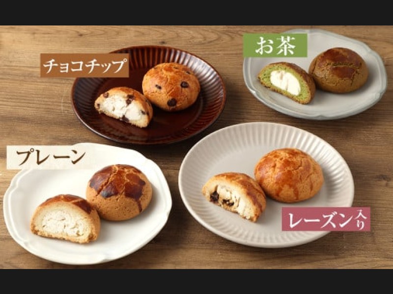 かぐやのチーズまんじゅうの特徴は、サクッとしたクッキー生地です。 チーズとの相性も抜群です。 フレーバーは、プレーン・レーズン入り・お茶・チョコチップの4種類です。それぞれの味をお楽しみください。