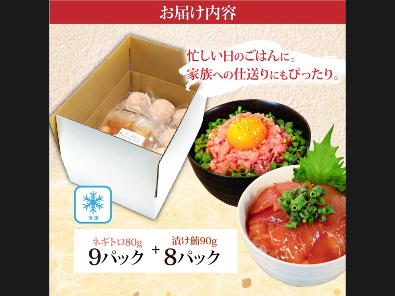 KYF139 ネギトロ80g×9P+漬け鮪丼90g×8P 冷凍配送 簡易包装 小分け 惣菜 人気 海鮮 ネギトロ丼 まぐろ...
