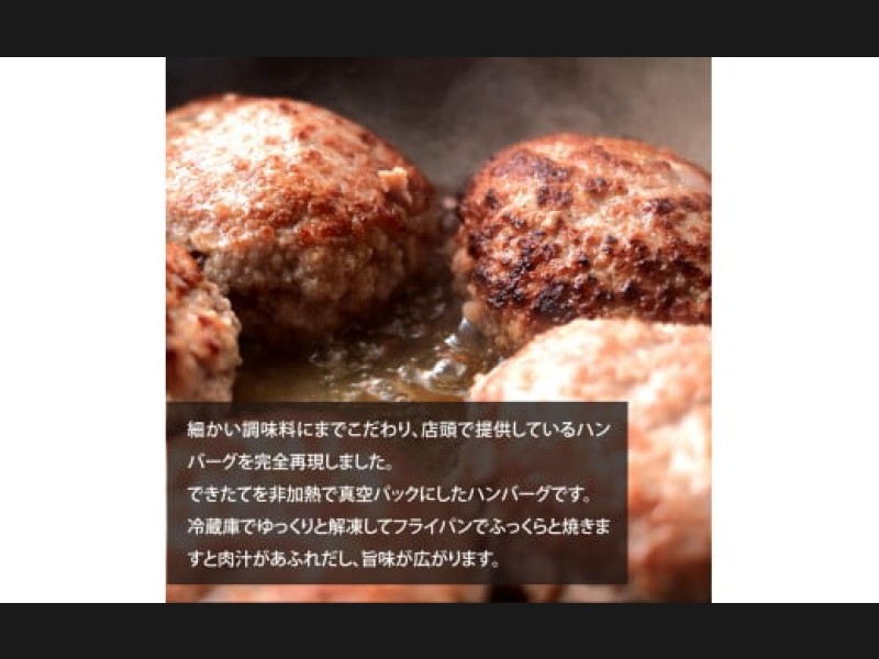 ゆっくりと冷蔵庫内で解凍をしていただき、フライパンで焼くとふっくらとした食感と旨味たっぷりのハンバーグができます。