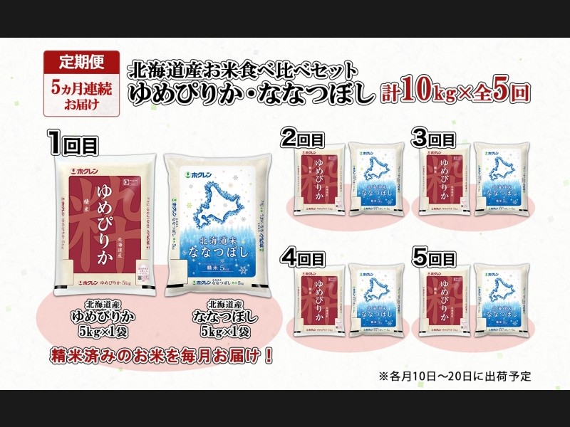 定期便 5ヵ月連続5回 北海道産 ゆめぴりか ななつぼし 食べ比べ セット 精米 各5kg 計10kg 米 特A 白米 ...