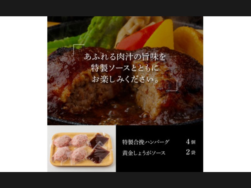 サイズ: 非加熱ハンバーグ130g×4ケ、自家製黄金しょうがソース×2ケ
