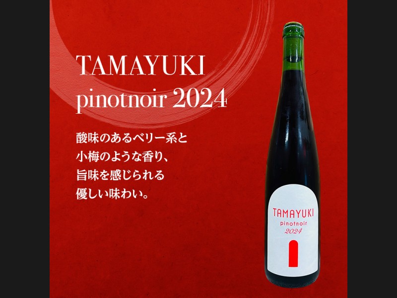 TAMAYUKI pinotnoir 2024:酸味のあるベリー系と小梅のような香り、旨味を感じられる優しい味わい。