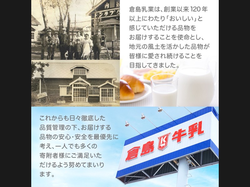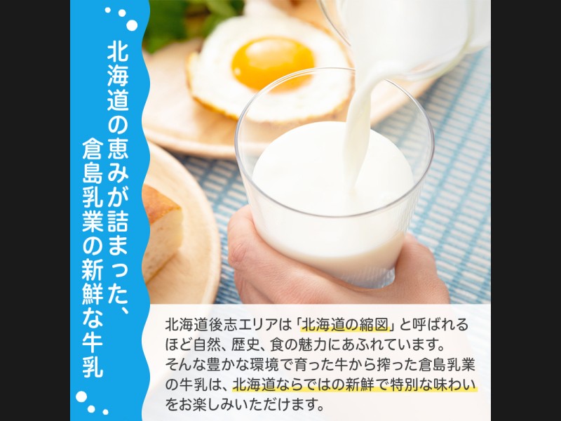 北海道産生乳本来の豊かなコクや繊細な風味と甘味がしっかりと活きる倉島乳業の熟練された製造方法で作りあげた牛乳です。