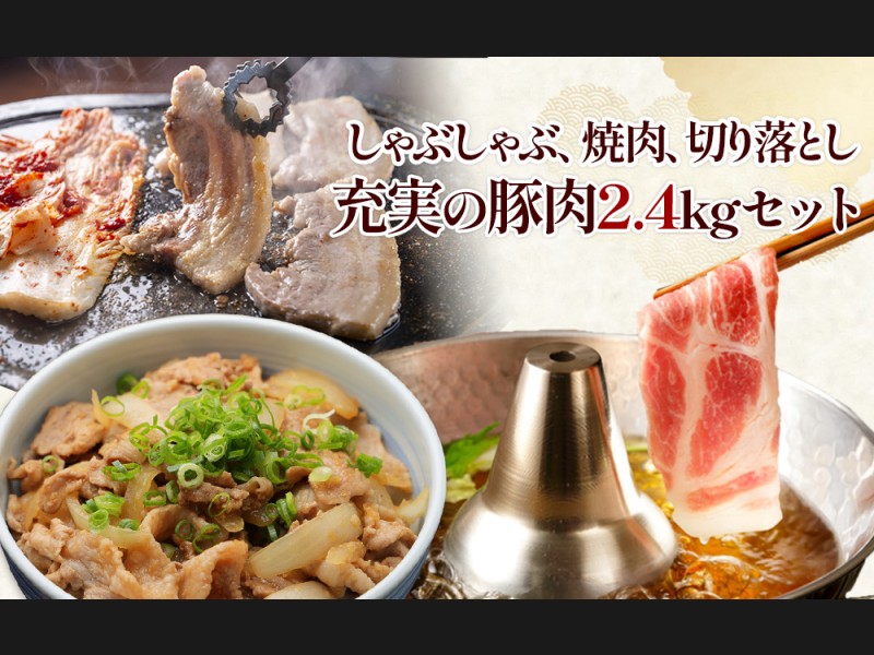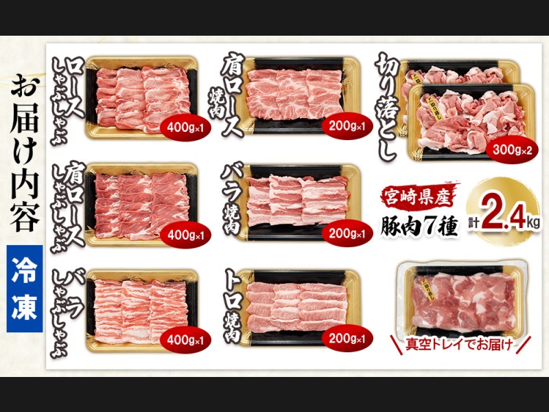 宮崎の旨みを凝縮!豚肉バラエティセット2.4kg(真空パック小分け)切り落とし・しゃぶしゃぶ・焼肉を一...