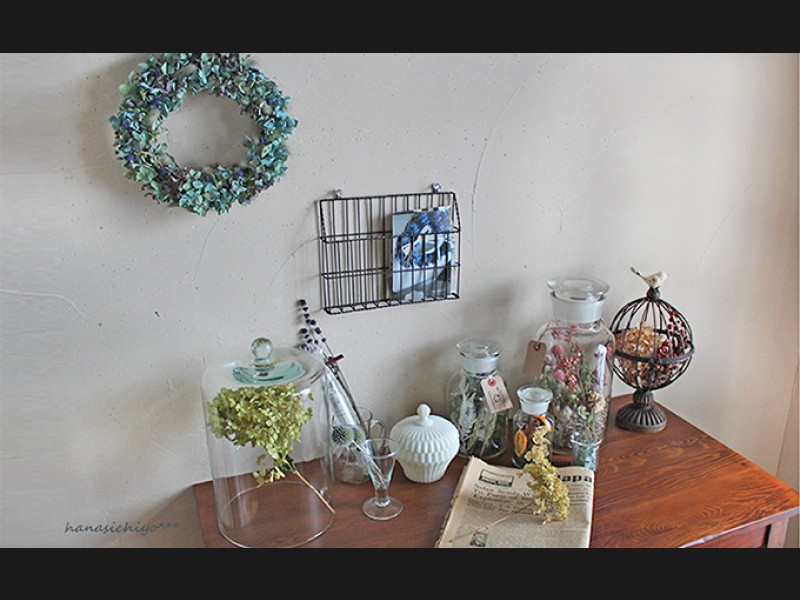 ※ドライフラワーのあじさいはカラーミックスになりますので画像のようなブルー以外に紫やグリーン、ベージュなど様々な色のものがあります。