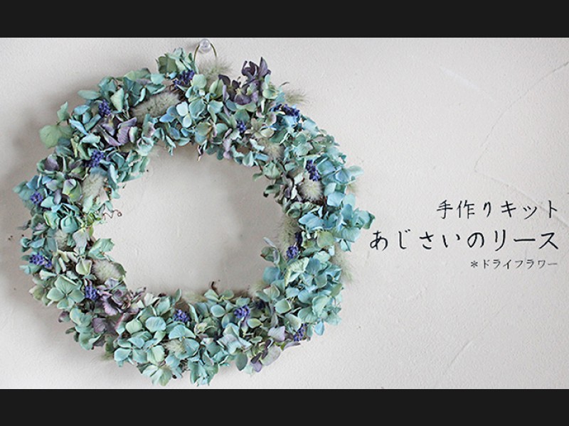 花七曜オリジナルデザインのドライフラワーアジサイのリースを手作りできるキットです。
