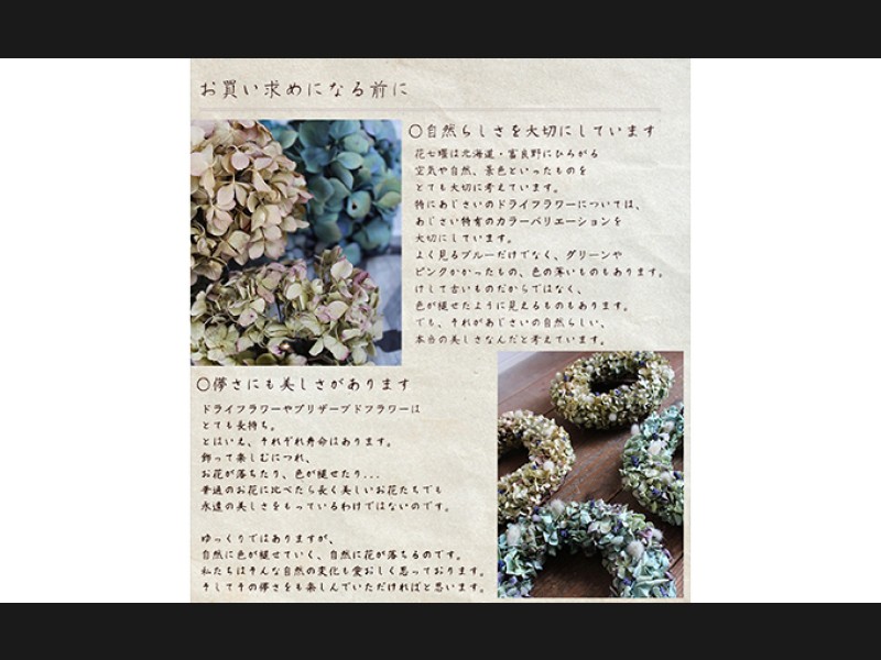 ※画像と色が違う、あじさいが足りないなどの理由でのご返品などはお受けできません。