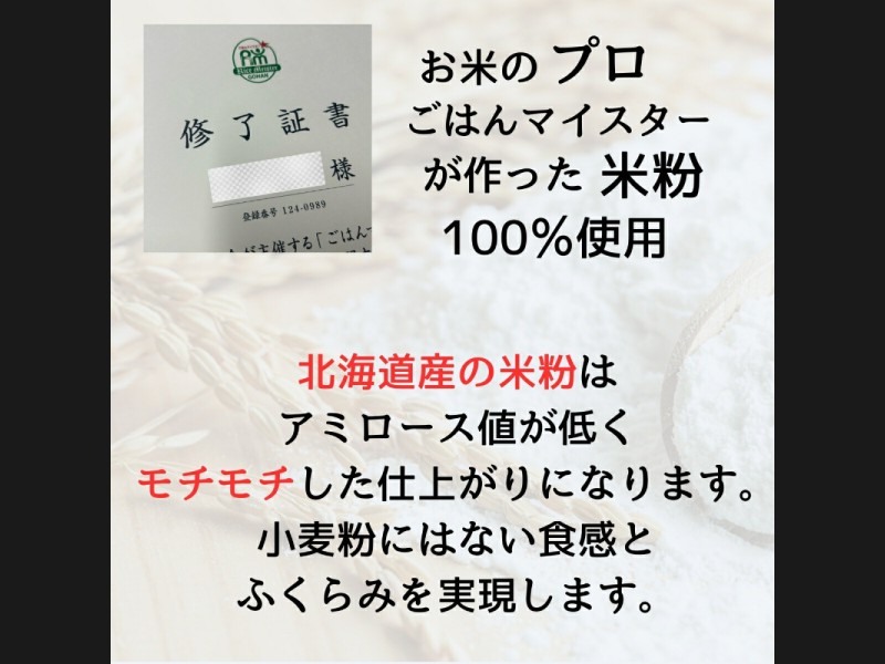 お米のプロごはんマイスターが作った米粉を100%使用しています。