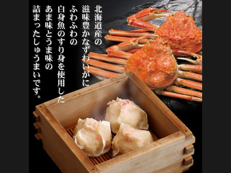 ずわいがにのほぐし身を贅沢に使ったしゅうまいです。※電子レンジで温めてお召し上がりいただけます。