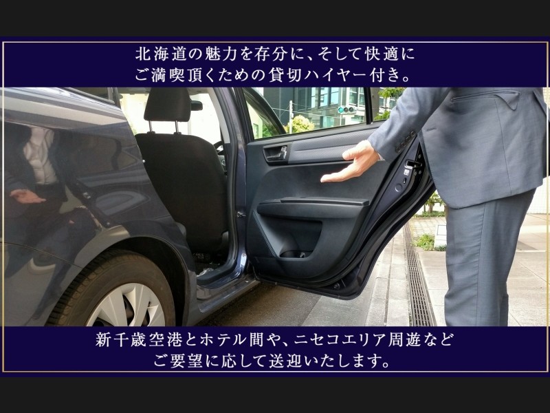 1日最大5時間貸切にて、空港⇔ホテルまでの送迎、ホテルからニセコエリア内観光の送迎を手配させて頂きます。本チケットご利用時にコンシェルジュまでご希望をお伝えください。
