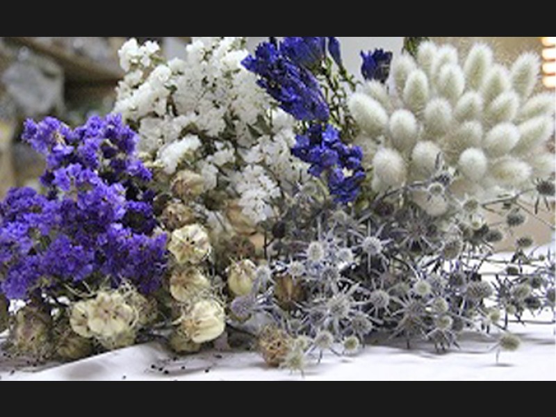 写真はエリンジウム・ニゲラ・スターチス・りんどう・ラグラス・千日香です。
