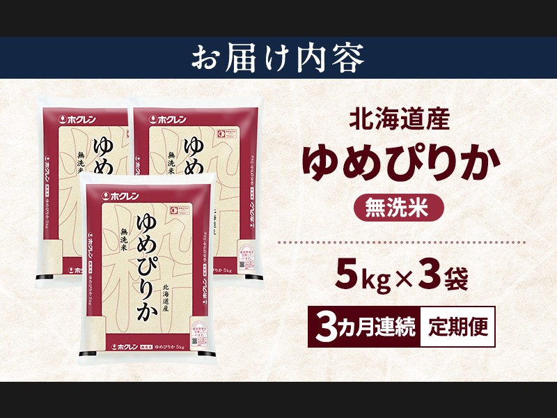 サイズ: ホクレン ゆめぴりか 無洗米 15kg(5kg×3袋)を3ヵ月連続で毎月10~20日にお届けします。