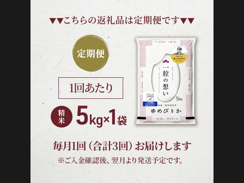【 2026年産米 新米 予約 】3ヵ月連続お届け 銀山米研究会のお米<ゆめぴりか>5kg(5kg×1袋) ご飯 ラ...