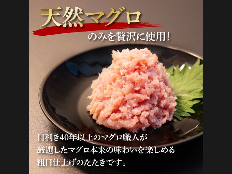 目利き40年以上のマグロ職人が厳選したマグロ本来の味わいを楽しめる粗目仕上げのたたきです。