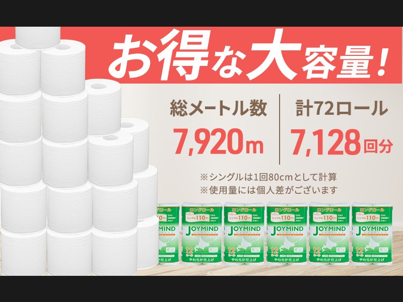 内容量:12ロール×6個パック(計72ロール、総メートル数7,920m)
