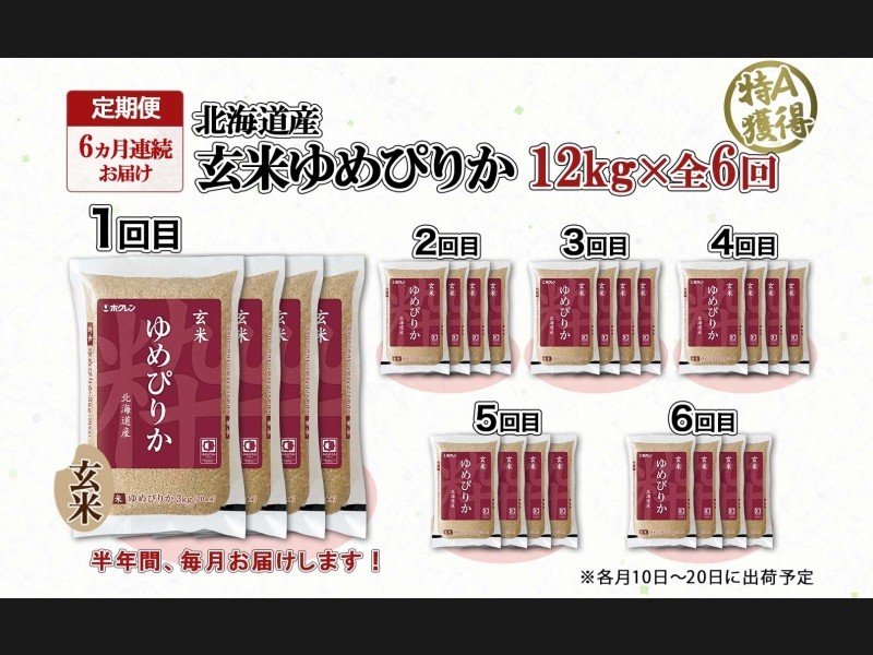 定期便6ヵ月連続6回 北海道産 ゆめぴりか 玄米 3kg×4袋 計12kg 小分け 米 特A 国産 ごはん グルメ 食物...