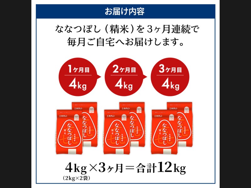 サイズ: ホクレン喜ななつぼし精米4kg(2kg×2袋)を3ヵ月間お届けいたします