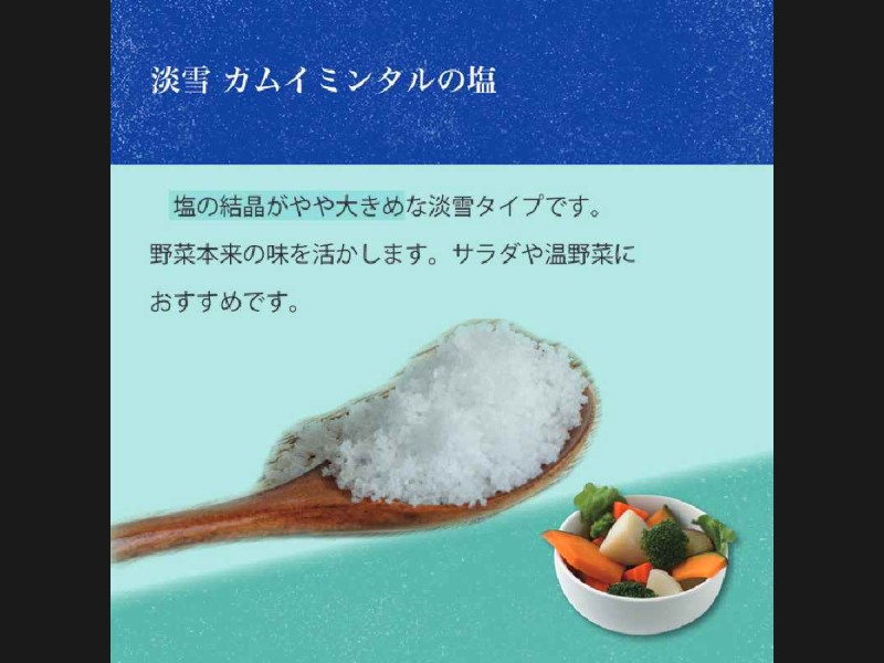 「カムイ・ミンタルの塩」のなかでも「淡雪」は全体の10%取れるかどうかの希少なもので、自慢の一品です。
