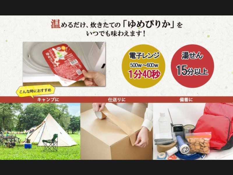 しかも、常温で長期保存(6ヵ月前後)できるので、いつでも手軽に美味しいゆめぴりかをお楽しみいただけます!