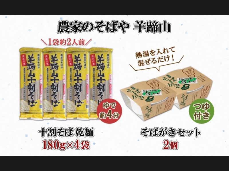 サイズ: 羊蹄山十割そば 180g(乾麺)×4袋 、そばがきセット(つゆ付き)× 2個