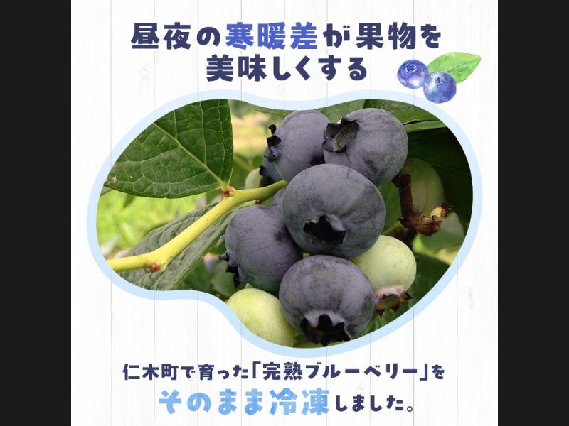 昼夜の寒暖差が果物を美味しくする、そんな北海道仁木町で育ったブルーベリーをそのまま冷凍しました。