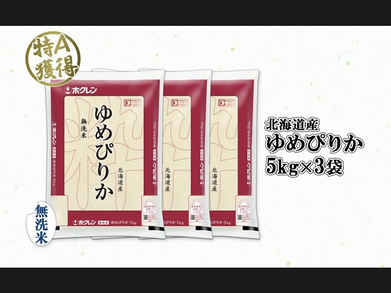北海道産 ゆめぴりか 無洗米 15kg(5kg×3袋)