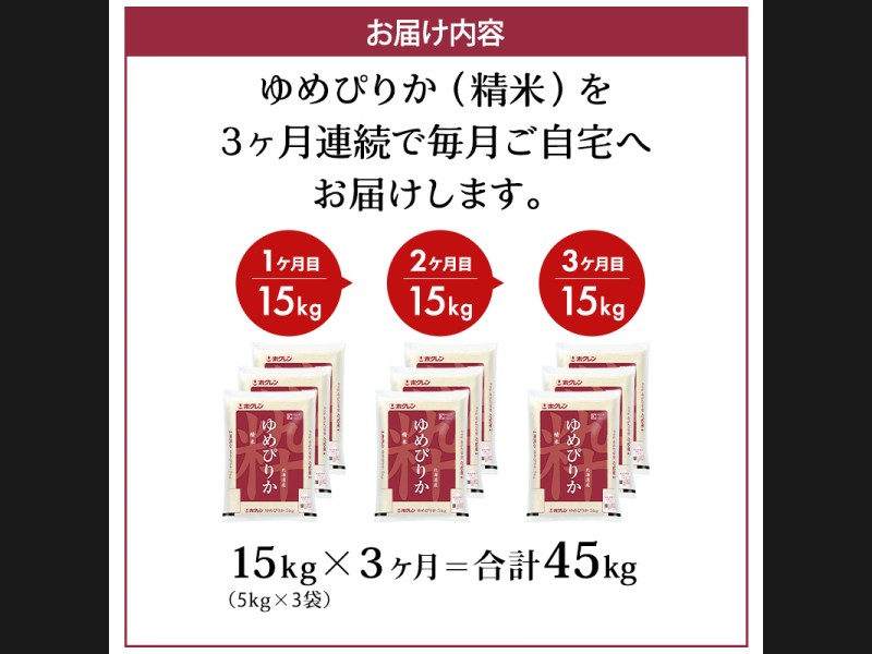 サイズ: ホクレンゆめぴりか精米15kg(5kg×3袋)を3ヵ月間お届けいたします