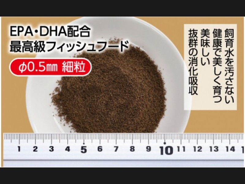 魚の健康と良好な水質を追求。ビタミン・ミネラルの豊富な海藻を多量に使用し消化吸収の難しい小麦粉類を排除。 魚が生きていくために非常に重要な働きをする生理活性物質を作り出すEPA・DHAの配合に成功。高次元の栄養バランスを実現した画期的なドライフードです。
