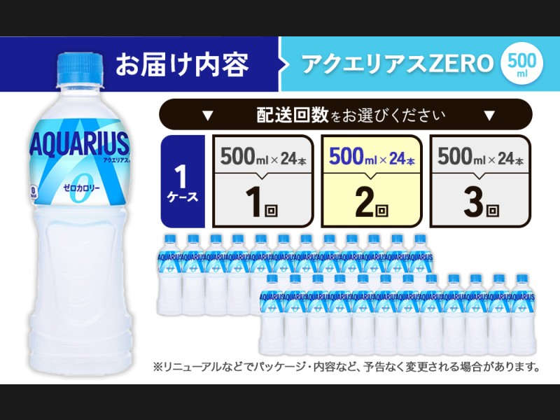 【2回定期便】アクエリアス ZERO(ゼロ) PET 500ml × 24本 1ケース 水分補給 スポーツ飲料 清涼飲料水 ...