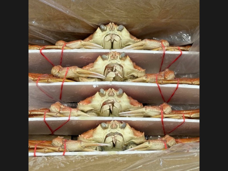 新鮮な活きたオオズワイガニを紋別市の本間水産でボイル加工後、急速冷凍しました。
